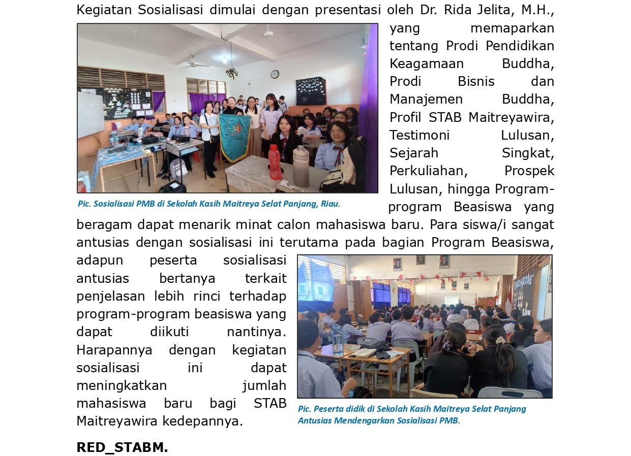 Sosialisasi Pmb (penerimaan Mahasiswa Baru) Tahun Akademik 2024-2025 Stab Maitreyawira Pekanbaru Ke Sekolah Metta Maitreya Pekanbaru02 November 2023 (2 years ago)