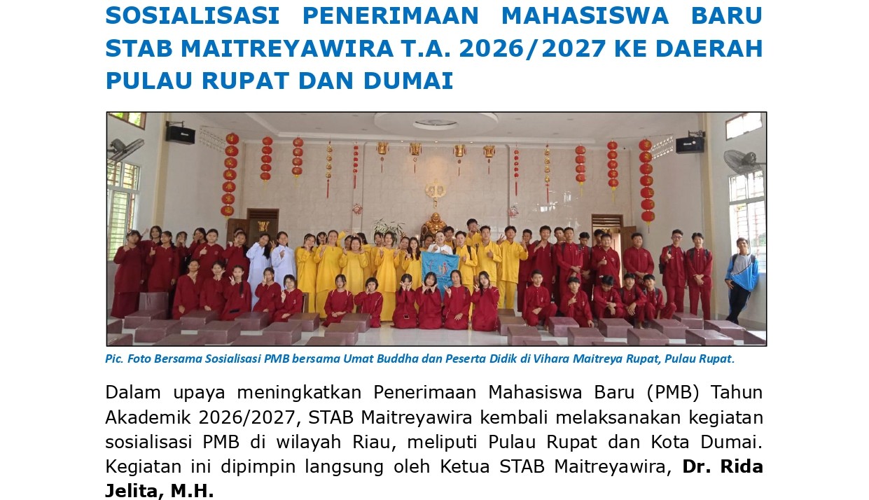 Sosialisasi Penerimaan Mahasiswa Baru Stab Maitreyawira T.a. 2026/2027 Ke Daerah Selat Akar, Kudap Dan Selat Panjang22 January 2026 (1 month ago)