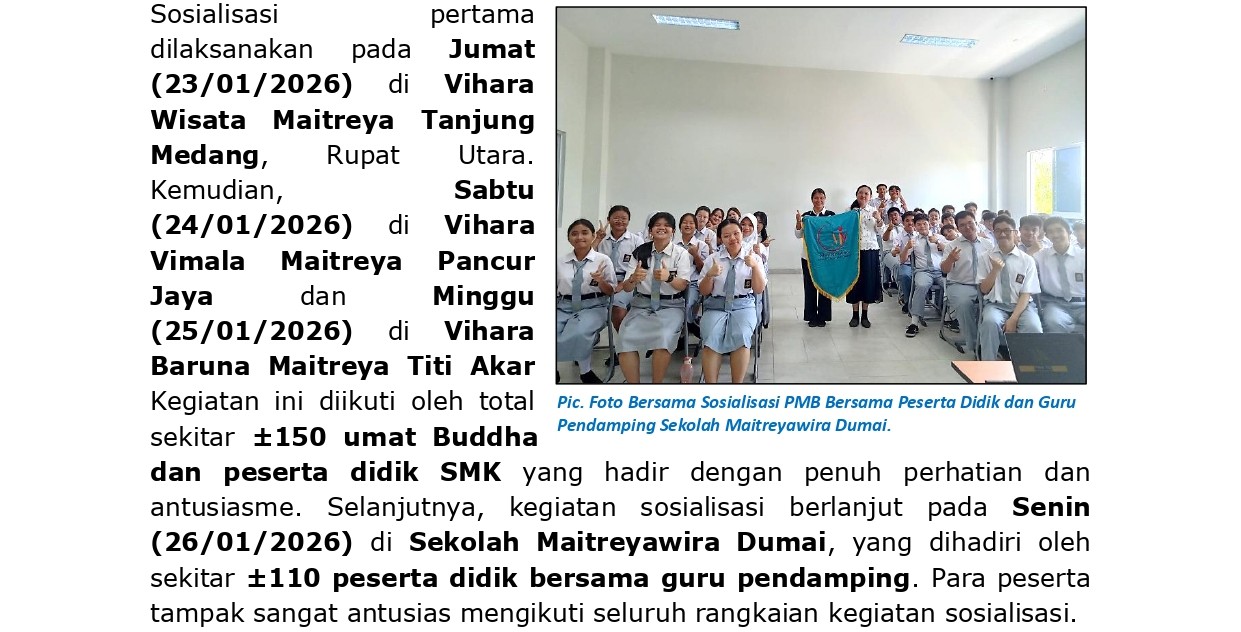 Sosialisasi Pmb(penerimaan Mahasiswa Baru) Tahun Akademik 2025-2026 Stab Maitreyawira Ke Smk Metta Maitreya pekanbaru23 March 2025 (11 months ago)