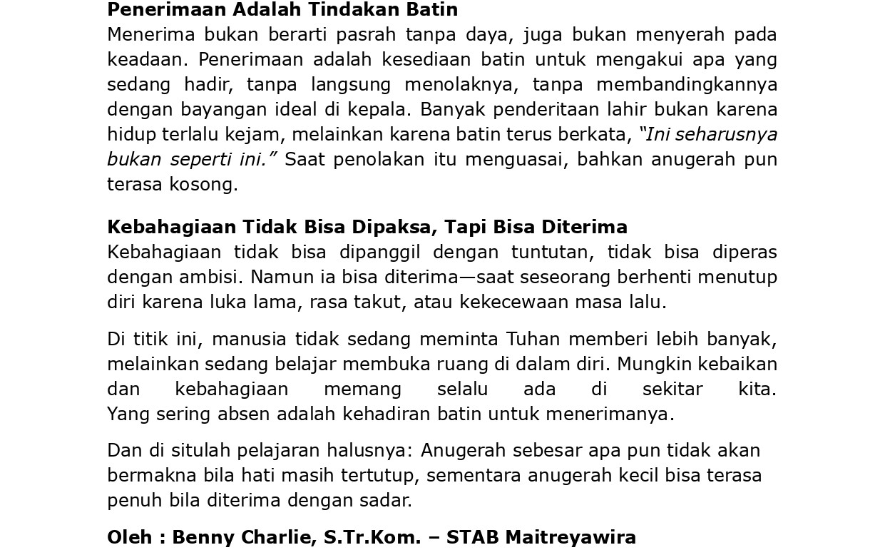 Kesadaran Keberagaman Jalan Hidup Luhur, Harmonis, Dan Bahagia*) - Bagian 315 May 2024 (1 year ago)
